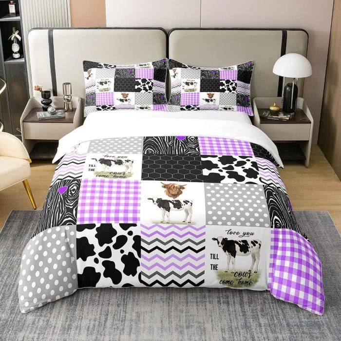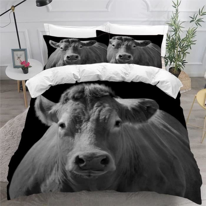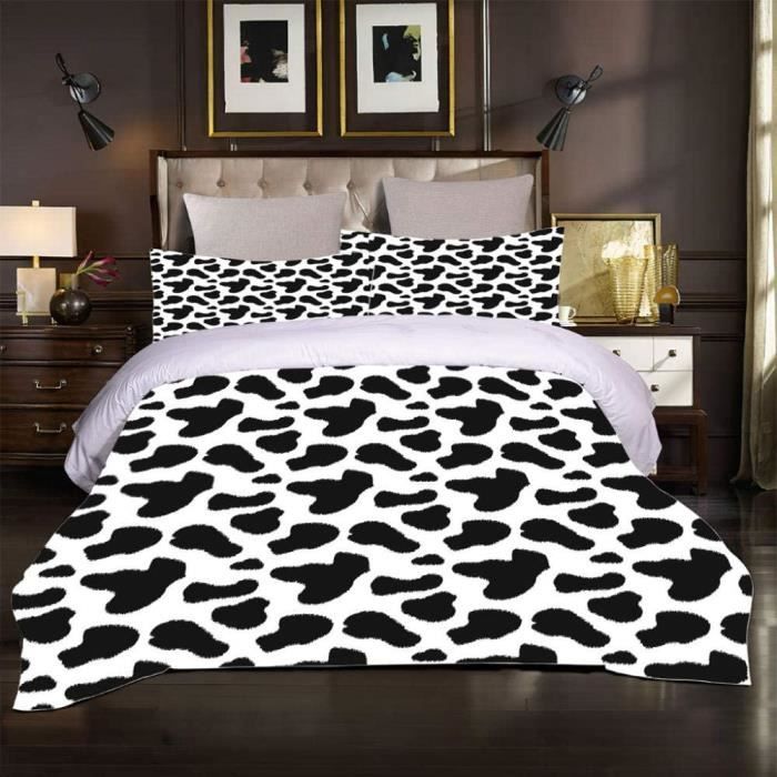Housse de Couette Modle de Vache Animale Fermeture clair cache et 2 Taie d'oreiller, 100%